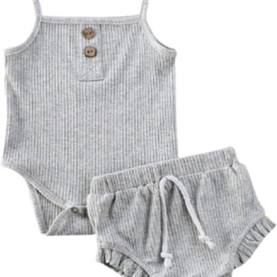 inhzoy Infant Baby Girls Shorts Set Knitted Ribbed Summer Outfits Strap Shirt Romper with Bloomers Shorts