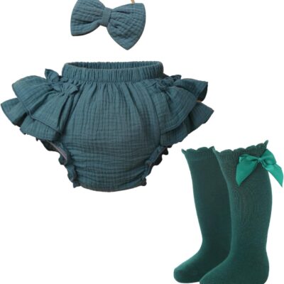 inlzdz Baby Girls Bloomers Toddler Cotton Ruffle Shorts Briefs with Leg Warm Stockings Socks Headband Outfits