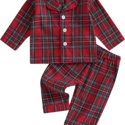 PanLidapan Toddler Baby Girl Boy Christmas Pyjamas Set Plaid Button up Long Sleeve Shirt Trouser Xmas PJs Sleepwear
