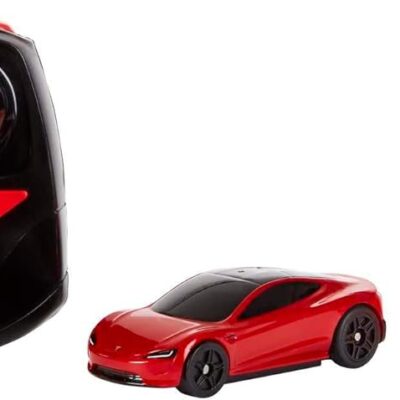 Hot Wheels Toy Car RC Tesla Roadster in 1:64 Scale, Remote-Control Vehicle with Controller & USB Cable, Works On & Off Track