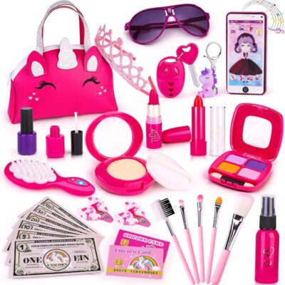 Kids Makeup Sets for Girls, Own1one Pretend Makeup Sets for Girls, Childrens Fake Make up Set, Pretend Play Makeup Gifts for Little Girls Age 3 4 5 6 7 8 9 Year Old (30 Pack)