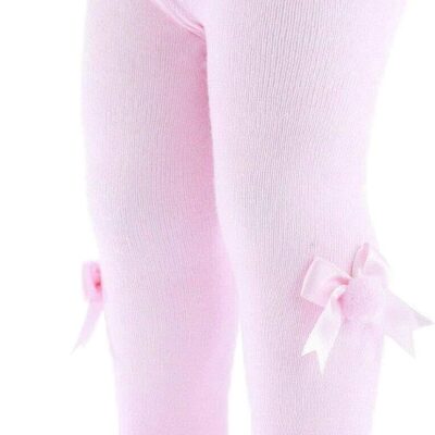 Mini Mart Online Limited Infants Girls Cotton Rich Tights With Ribbon Bow/Pom Pom Nb/24 Months