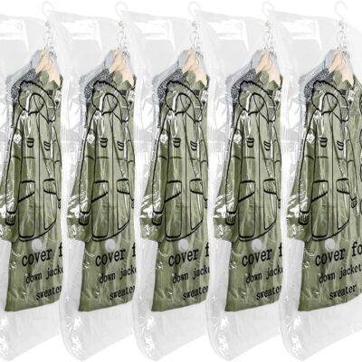 Hanging Storage Bags Vacuum Pack for Clothes, 5 Packs Storage Bags Vacuum Pack for Suits, Coats, Jackets or Dresses, Closet Organizer Space Saver Vaccum Bags