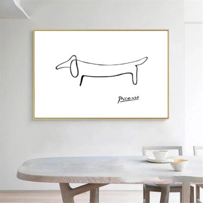 HNKDKJ Abstract Line Style Picasso Dachshund Dog Minimalist Art Poster Canvas Wall Prints Framed Picture for Kids Nursery 100x150cm/39x59inch -with-Golden-Frame