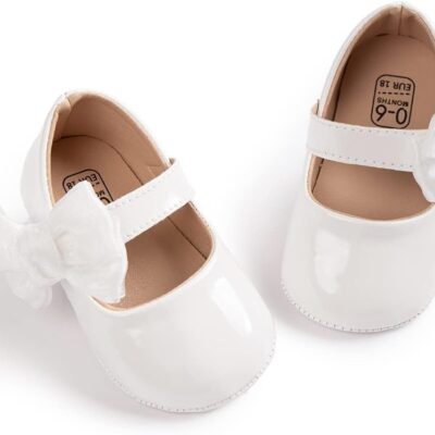 Sonsage Infant Baby Girls Bowknot Mary Jane Toddler PU Leather Soft Sole Princess Wedding Dress First Walking Flats Prewalker Newborn Ballet Shoes