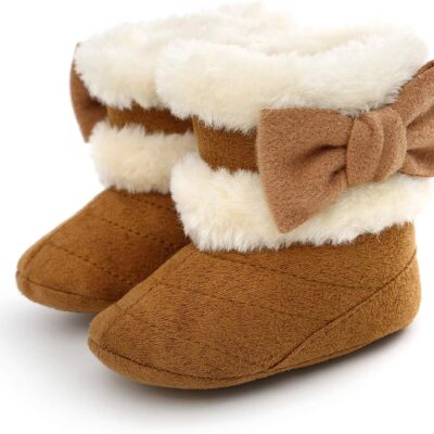 Petyoung Baby Winter Warm Fleece Bootie, Newborn Non-Slip Soft Sole Winter Shoes Bowknot Prewalker Boots for Girls 0-18 Months