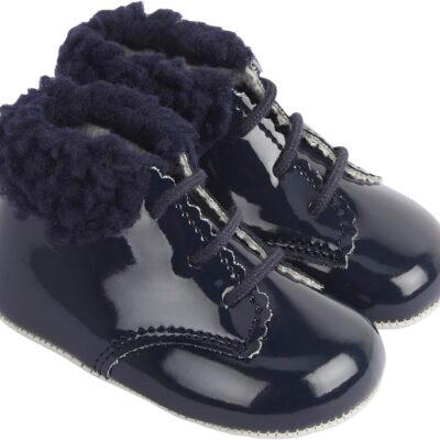 Early Days Baypods Baby Shoes. Bootees Made In the UK, soft sole prewalker lace up boots with fur collars for boys and girls.