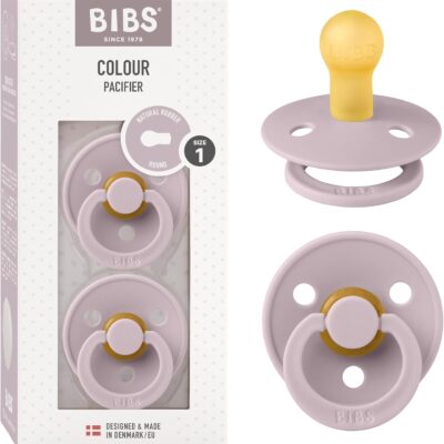 BIBS Colour Soother 2-Pack, BPA Free Dummy Pacifier, Round Nipple. Natural Rubber Latex, Made in Denmark, Size 1 (0-6 Months), Dusky Lilac