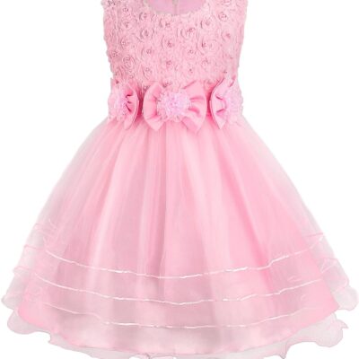 Discoball Girls Princess Dress Rose Flower Bow Tie Party Dress Tulle Wedding Dress Bridesmaid Christening Elegant Formal Dress for Girls