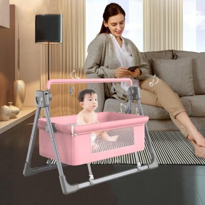 Bedside Bassinet, Rocking Chair Electric Cradle Baby Swing Bed,baby Rocker,Adjustable Bedside Cribs,Automatic Rocking Recliner Crib Basket, Best Baby Bed For Infant Newborn Unisex ( Color : Pink )