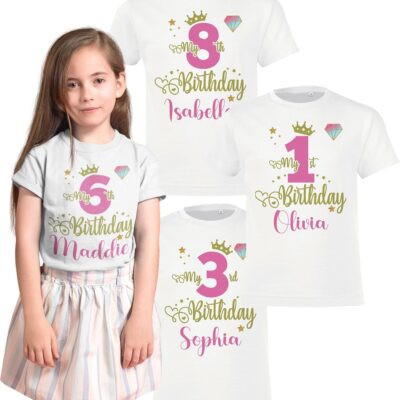 Personalised Birthday T Shirt Girls Pink Princess Top 1st 2nd 3rd 4th 5th 6th 7th 8th 9th 10th 11th 12th Party Outfit Number T Shirts Kids