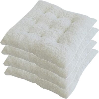 4 Pack Chair Cushions,Square Non-Slip Plush Thicken Seat Pillows Cushions,Soft Thick Chair Cushion for Kids Reading Adult Office for Dining Living Room,Kitchen,Floor (White A)