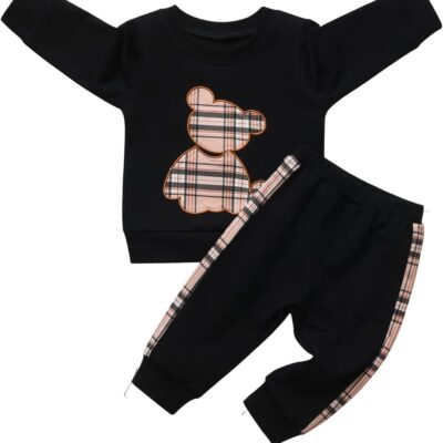 Zoputey Baby Boy Girl Clothes Cartoon Bear Print Long Sleeve Tops + Pants Toddler Baby Outfit Set