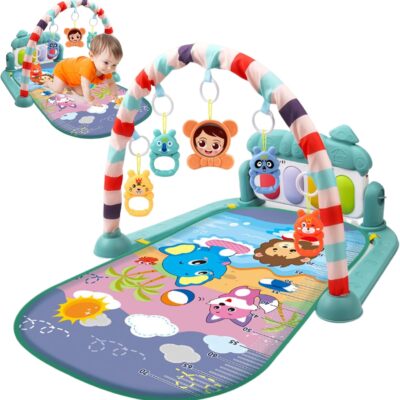 Baby Play Mat, Baby Activity Center with Music & Light Safe & Easy Baby Gym Play Mat with Rattle Pendant Removable Baby Play Mat with Adjustable Board for Newborns, Green