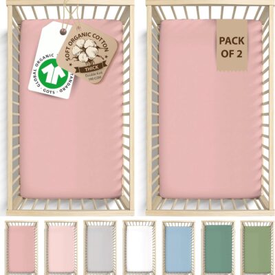 Bunnyjik – GOTS Organic Cot Bed Sheets 140 x 70 fitted – Luxuriously Thick & Soft Organic Combed Cotton – Pack of 2 Cotbed Fitted Sheet – Toddler Bed Sheets 140 x 70 Cot Sheets 140 x 70 Fitted