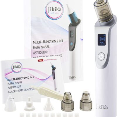 Jikika 2 in 1 Electric Newborn Nasal Aspirator Blackheads, Aspirates Mucus Newborn Babies Children 5 Silicone Tips, Pulls Mucus Babies Aspirator Nose Cleaner, USB Rechargeable Aspiramuco Aspirator, CE