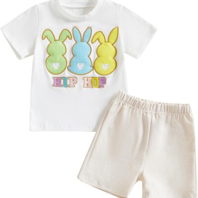 PanLidapan Baby Boys Easter Outfits Summer Clothes Short Sleeve Bunny Print T-Shirt Shorts Toddler 2 Piece Clothes Set Shorts Set Tracksuit