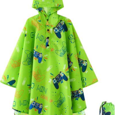 WAWSAM Kids Rain Poncho Reusable Toddler Raincoat Waterproof Rain Jacket for Age 3-15