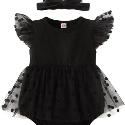 Baby Girl Dress My Little Black Romper Dress Short Sleeve Mesh Stitching Bowknot Princess Gown Romper Party Tutu Dress