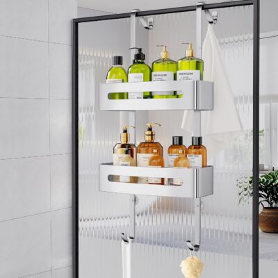 Ajex Shower Caddy Hanging,Over Door Shower Shelf Storage with 2 Tier Shower Rack Hanging, No Drilling Stainless Material Shower Shelf Bathroom Organizer,Shower Storage Rack for Shampoo and Shower Gel