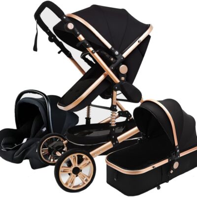 Newborn Pushchairs 3 in 1 2022 Baby Bassinet Sleeping Stroller with Reversible Seat Anti-Shock Springs Pram with Custom Canopy,Dinner Plate,Footmuff (Black)