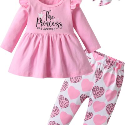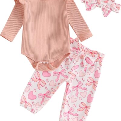 Himllauen Baby Girls Romper Outfit Long Sleeve Bodysuit Floral Pants with Headband Set 3Pcs Newborn Clothes for Baby Girl 0-18 Months Fall Spring Winter