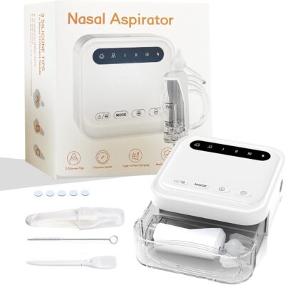 SAICHEEK Electric Nasal Aspirator with Build-in Storage for Baby & Adults, Rechargeable 6 Levels Nose Sucker with 360° Anti-Reflux Design,Automatic Baby Nasal Aspirator w/ 3 Detachable Silicone Tips