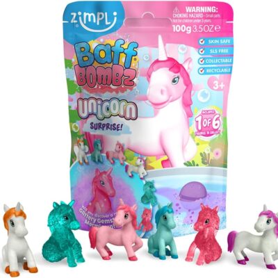 Zimpli Kids Large Unicorn Surprise Bath Bomb, 6 Surprise Unicorn Toys to Collect in Total, One Per Bath Bomb, Children’s Collectable Bath Toy, Stocking Filler Toy, Xmas Present for Boys & Girls