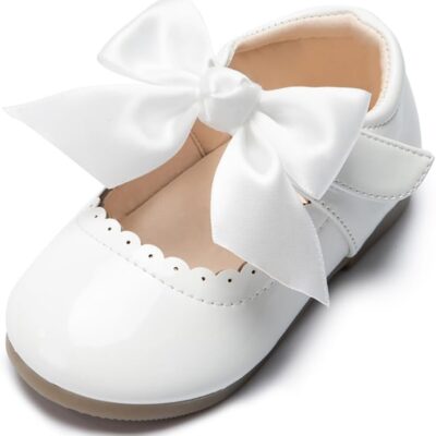CENCIRILY Toddler Little Girl Mary Jane School Shoes Soft Anti-Slip Sole Hook and Loop Wedding Dress Flat