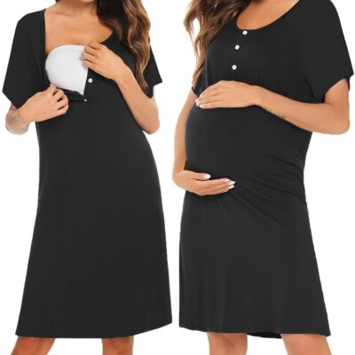 Irdcomps Women’s Maternity Nightdress Breastfeeding Button Nightwear Hospital Short Sleeve Nursing Nightgown Pregnancy Loungewear Labour Gown Pyjamas