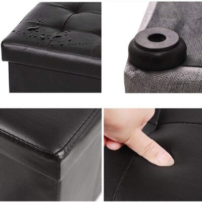Faux Leather Ottoman Storage Foot Stool Cube Bench Seat Toy Box Tray Organizer Chest Black 12x12x14 inch.