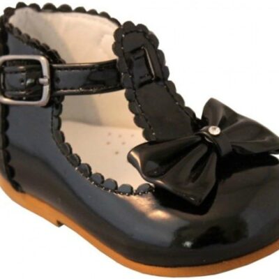 Sevva Baby Infant Girls Spanish Style Patent Walking Shoes + Bow Size 2 3 4 5 6 (UK 3 (19 Euro) 12cm 12-18 months, Black)