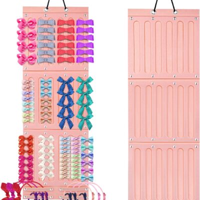 Hair Accessories Storage for Baby Girls, Bestcool Hanging Headband Holder Baby Hair Bows Storage Organizer with 21 Detachable Felt Ribbons for Baby Girl Bows Headbands Hair Clips Hair Ties Door Closet