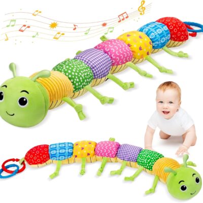 Accevo Baby Musical Multi-Sensory Caterpillar, Stuffed Animal Activity Soft Toys with Crinkle, Rattles and Textures, Tummy Time Toys for Newborn 0-3-6-12 Months Boys Girls, Green