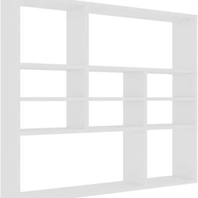 vidaXL Wall Mounted Shelf – Modern White Engineered Wood Display Shelf with 10 Open Compartments for Living Room, Bedroom, Office