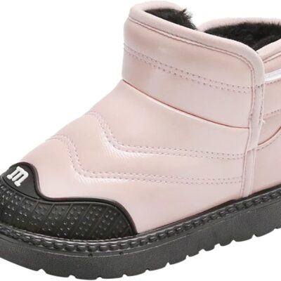 Toddler Boys Girls Snow Boots Baby Boy Fall Warm F𝘂r Lined Boots Winter Wa𝘁erproof Outdoor Ankle Booties Non Slip Shoes for Baby Toddler School Classic 𝗢xford Boots (Pink, 3 Big Kids)
