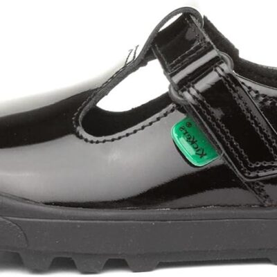 Kickers Girl’s Plunk Mary Jane Black Leather School Shoe Uniform