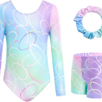 JiAmy Gymnastics Leotards for Girls with Shorts Set, Long Sleeve Kids Gymnastics Athletic Outfit for Kids 3-12 Years