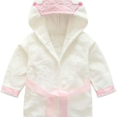 Baby Boys Girls Bathrobe Infant Kids Hooded Towel Blanket Crown Printing Dressing Gown Sleepwear Homewear Soft Cotton Bath Robe Long Sleeve Cloak Sleepwear Nightwear for 1-5 Years