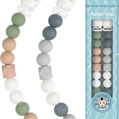 Kowlone Dummy Clips Boys Girls Soother Pacifier Chain Holder for Baby Unisex Newborn Dummies(Grey,Green)