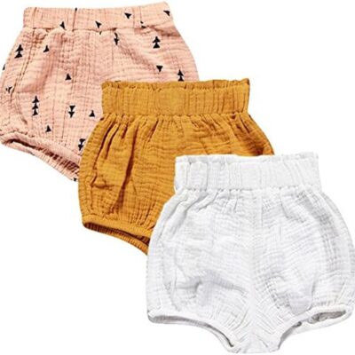3 Pack of Little Baby Girls Boys Cotton Linen Blend Cute Bloomer Shorts