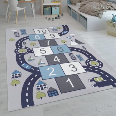 Paco Home Kids Rug, Play Mat Playroom Rug, Animals Roads Cars Maps Treasure Hunt Pirates, Size:80×150 cm, Colour:Grey