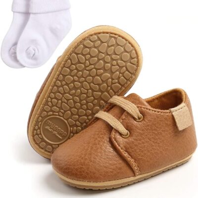 Baby Boy Shoes, Toddler Boy Girl Anti-Slip PU Sneakers Shoes Newborn First Walking Shoes with Cotton Socks for 0-18Months