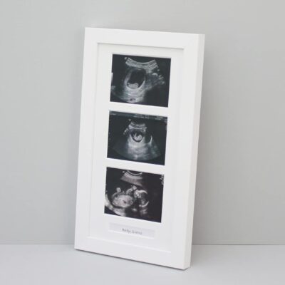 Baby Scan Photo Frame – Multi aperture Frame for Three Scan sized Photos and Text Box. Handmade by Art@Home. (White)
