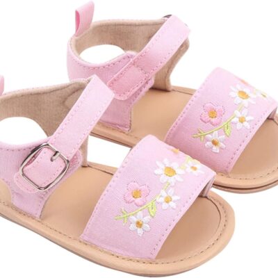 Infant Toddler Boys Girls Sandals Baby Walking Shoes Soft Soled Flower Embroidered Baby Shoes Breathable Sandals Non Slip Summer Casual Sandals