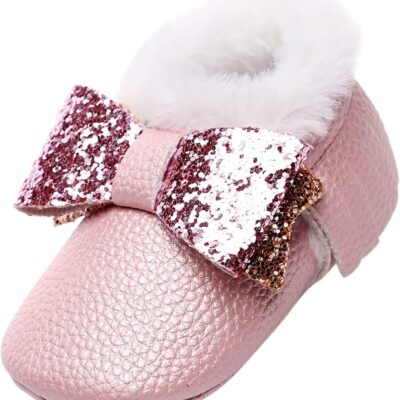 First Walking Shoes Bowknot Crib Shoes Boots Baby Boots 0-18 Months Slip On Children’s Socks Shoes Crawling Shoes Baby Toddler Shoes Fashion Sandals, pink, 3-6 Months