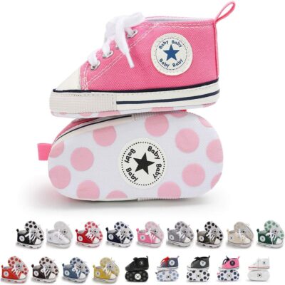 Tutoo Unisex Baby Boys Girls Star High Top Sneaker Soft Anti-Slip Sole Newborn Infant First Walkers Canvas Denim Shoes