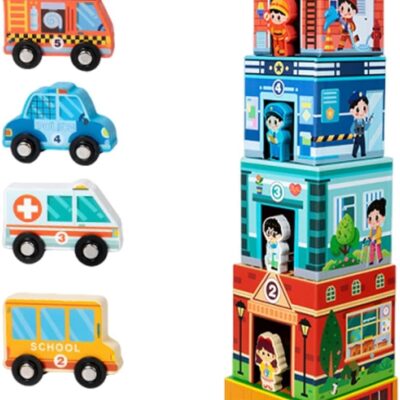 Wooden Town Play Set, Toy Car Garage, Wooden Stacking Blocks, Educational Town Play Set, Car Garage Toy For Kids, Early Education Toys, Family Toy Set, Wooden City Play Set, Kids Toy Garage