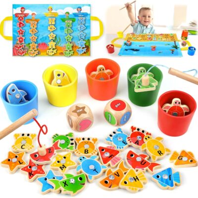 ZippyZoom Wooden Toddler Toys Fishing Game: Montessori Sensory Toys for 1 2 3 Year Old Boys Girls – Birthday Baby Gifts for 1 2 3 Year Olds – Color Sorting Shape Learning for Kids