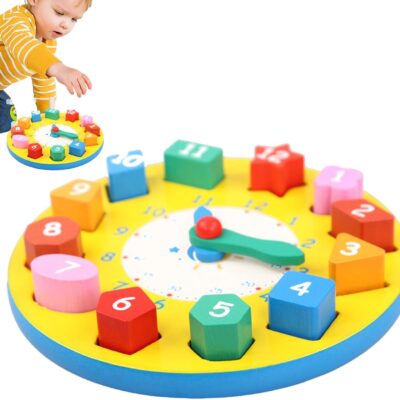 Teaching Time Blocks Clock, Interactive Kids Clock Toy, 7.48×7.48×1.57 Inches, Shape Pattern Sorting Puzzle, Fine Motor Skills for Home, School, and Nursery Learning, (Multicolor)